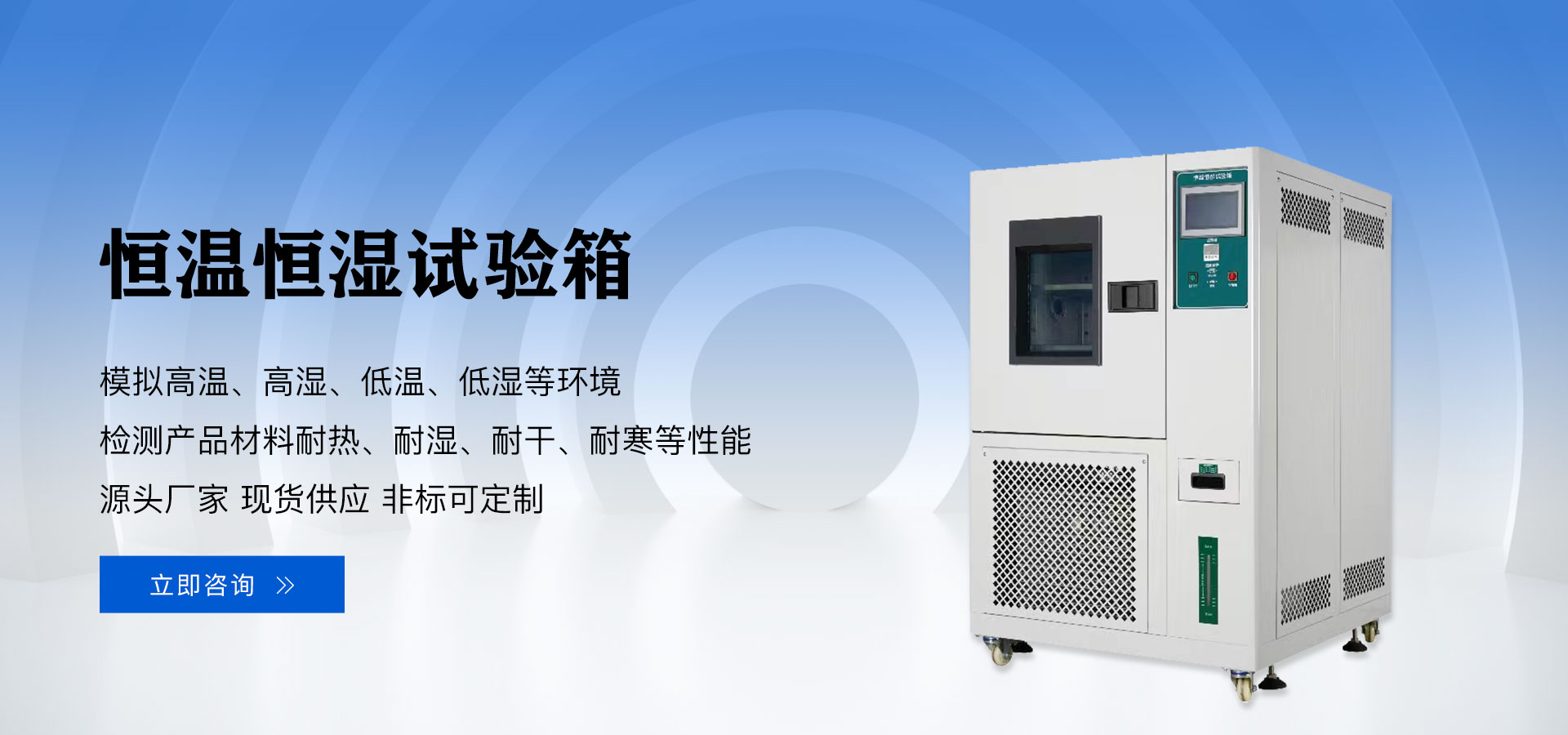 恒溫恒濕箱又稱恒溫恒濕試驗(yàn)箱、恒溫恒濕試驗(yàn)機(jī),模擬高低溫濕熱等環(huán)境,用于檢測(cè)材料在各種環(huán)境下性能的設(shè)備及試驗(yàn)各種材料耐熱、耐寒、耐干性能。適用于汽車、通訊、電子、電工、橡塑等行業(yè)。